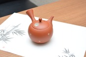 常滑焼の横手急須です。当店でレギュラーのお茶を淹れるのに使用しているのと同じものです。